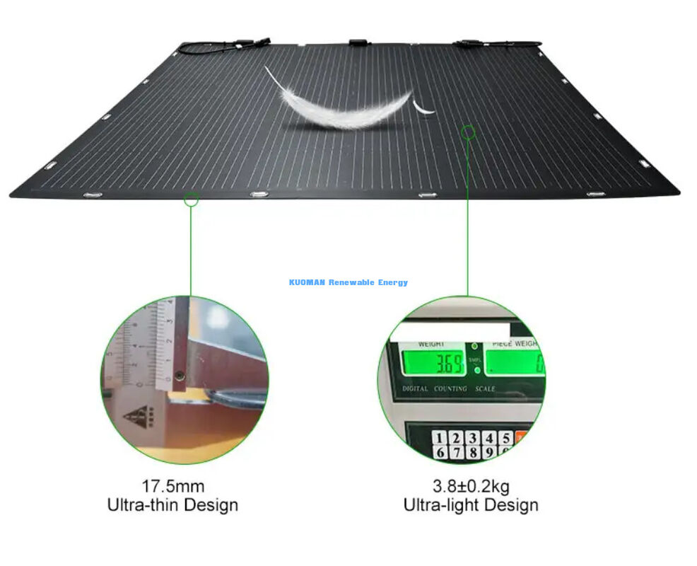 360 graden buigzaam bifacial flexibel zonnepaneel 200W FFC en koolstofvezel